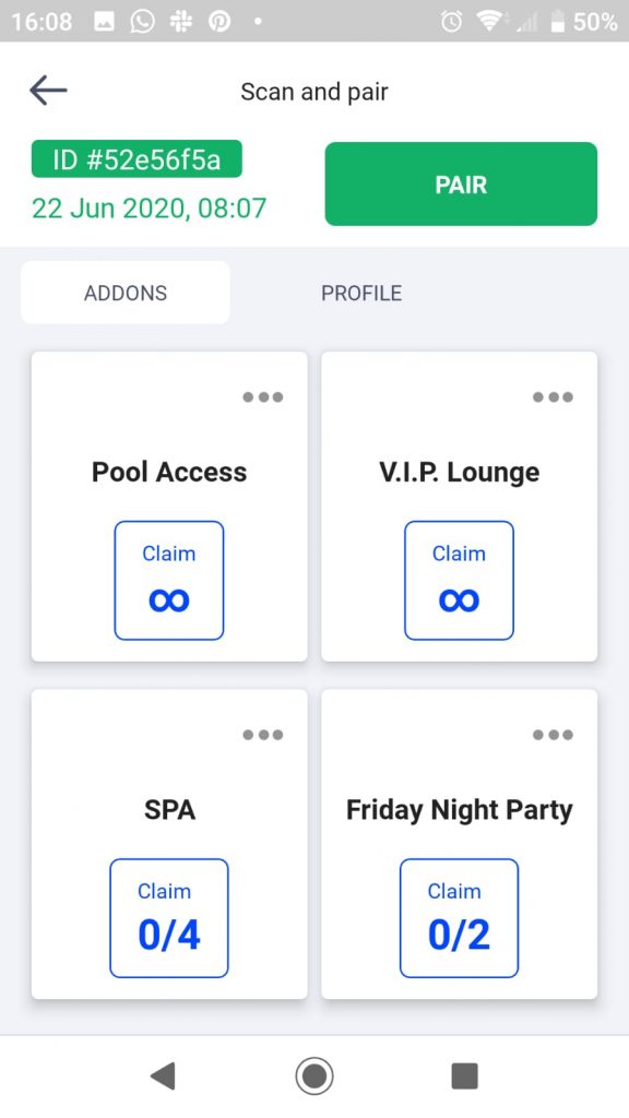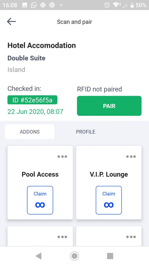 Within your hotel, there might be a special lounge/bar designed for your loyal guests. To verify who is entitled to use those designated areas designed for your frequent guests, a simple tap of the hand does the job. The receptionist needs to assure that this benefit is linked and stored on the NFC wristband, during the check-in process.