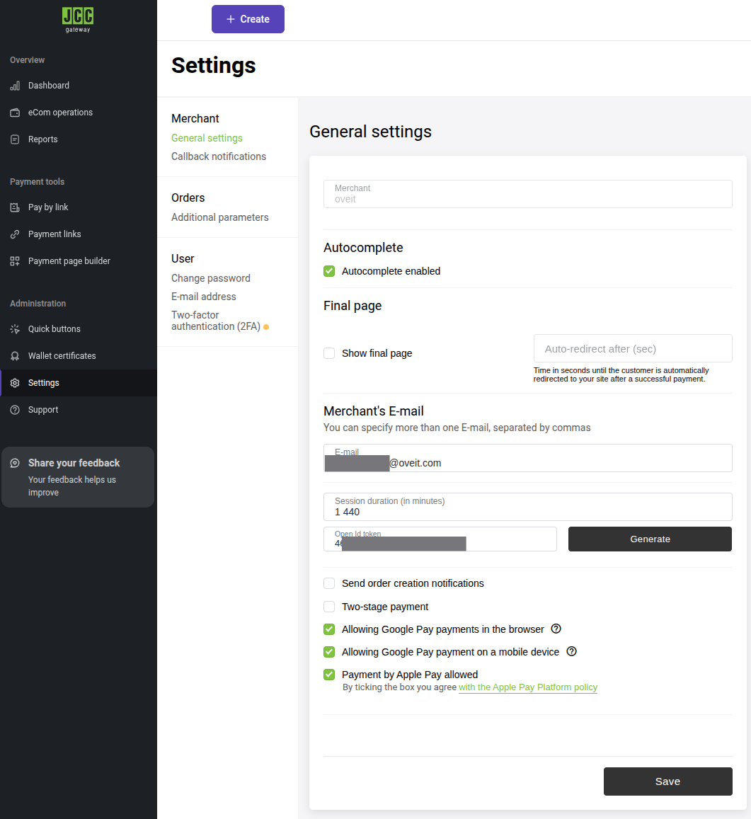 Now that the JCC portal is ready, enter the following details into your Oveit payment configuration: